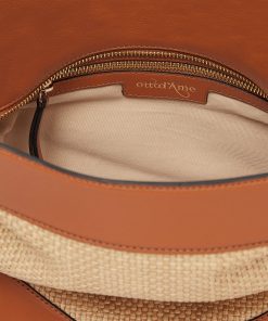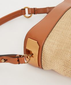 Straw bucket bag with leather details and logo, zip closure and adjustable shoulder strap. Interior with two storage pockets. Gold finish. Dimensions: 26.6x27x12 Shoulder strap length: 33 cm