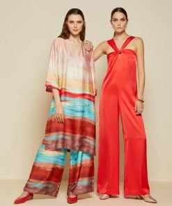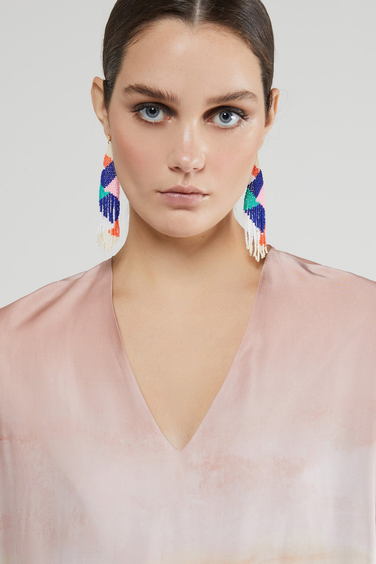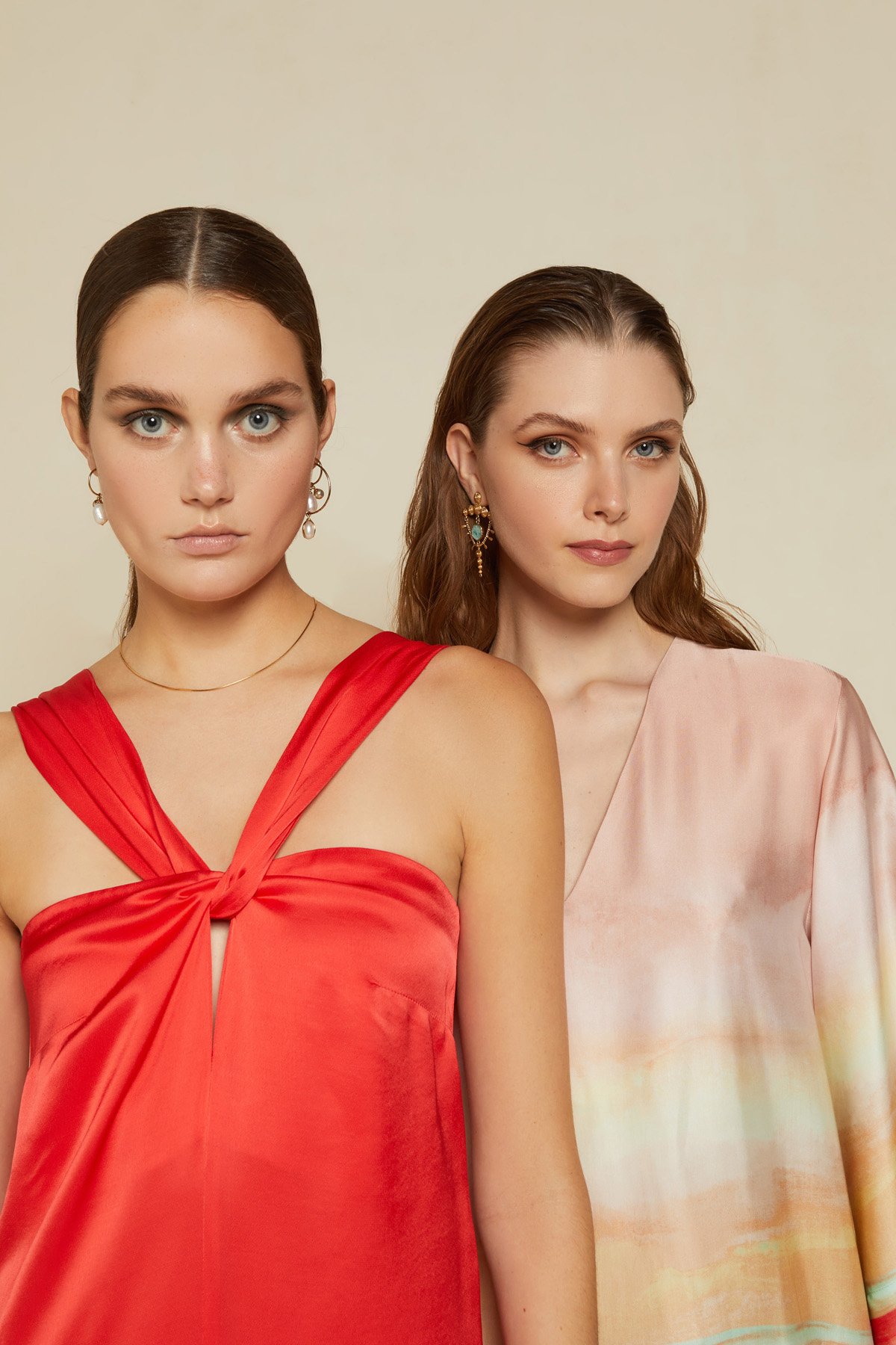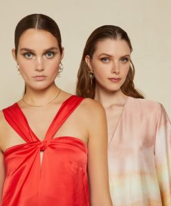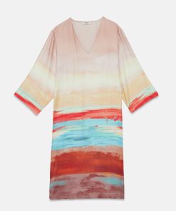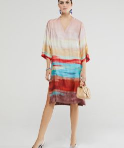 Fluid 100% printed viscose midi dress with V neckline and slits
