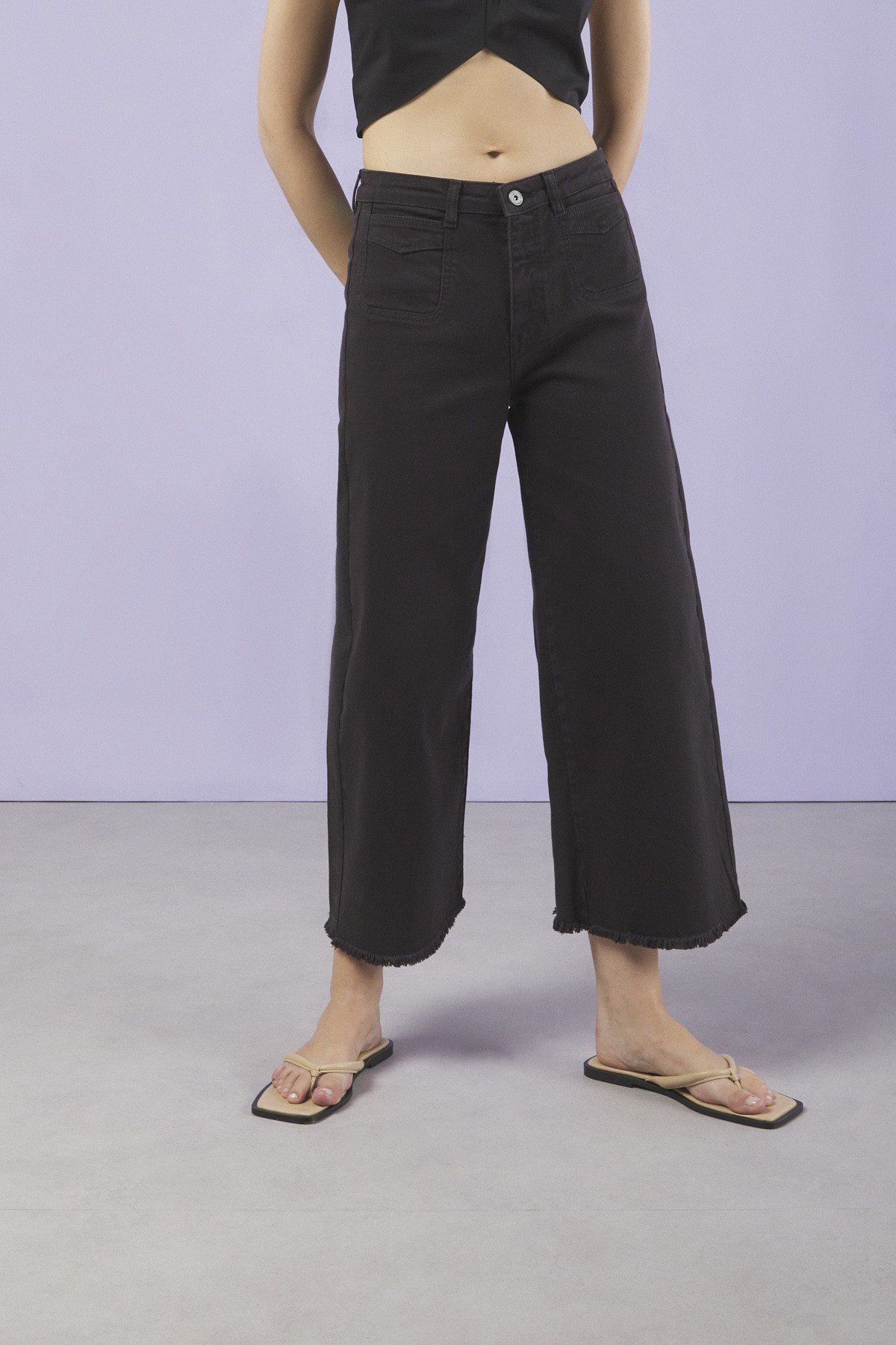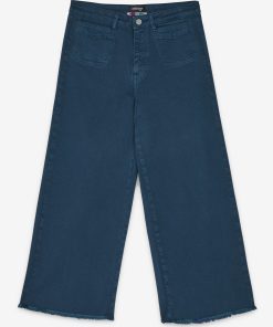 100% Cotton Jeans Cropped French with raw cut hemline.
