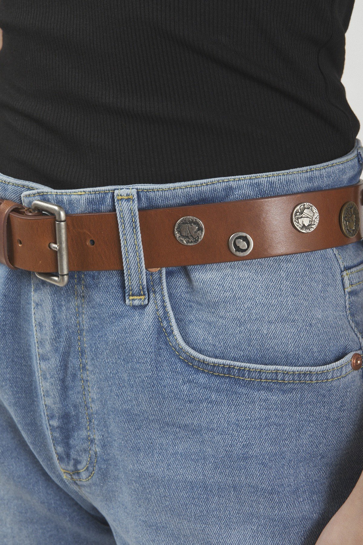 100% Leather belt with metallic details.