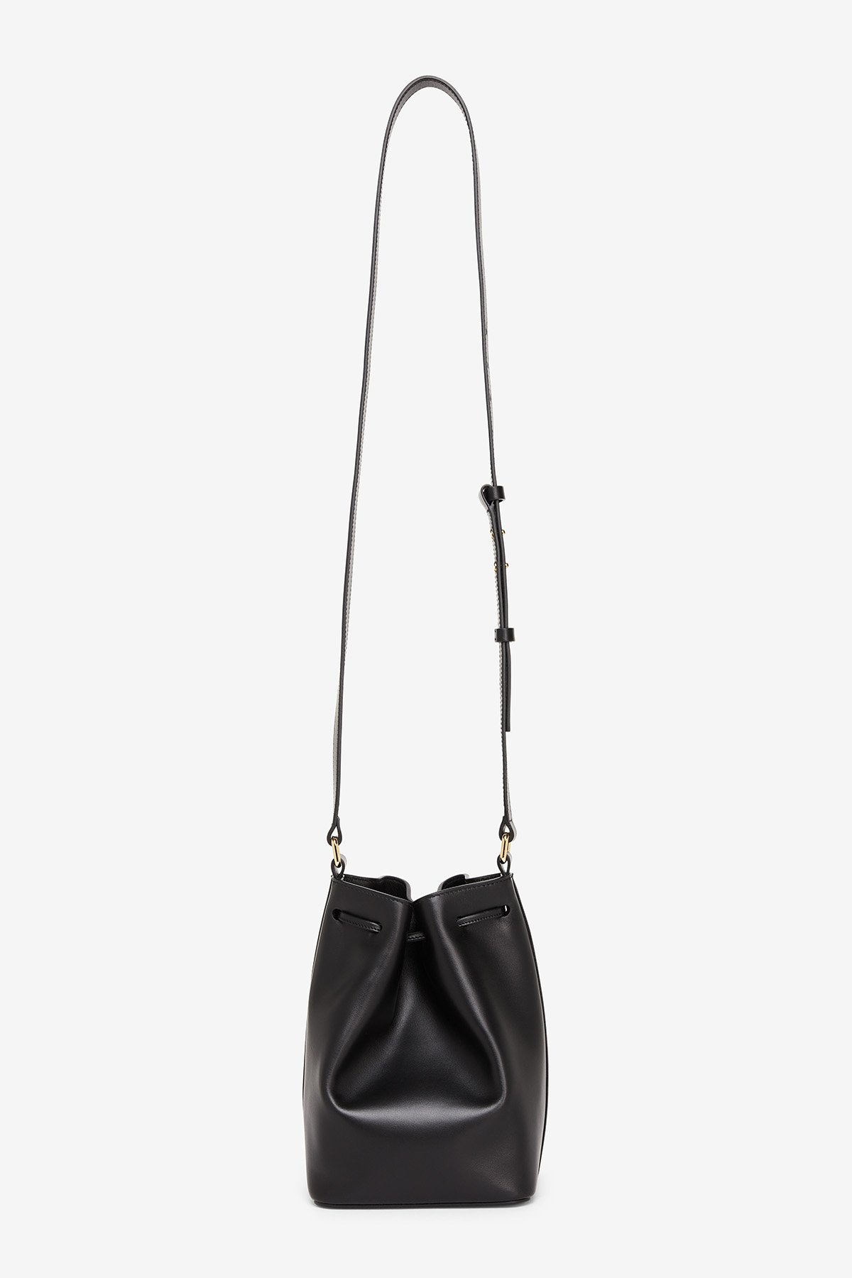 100% Leather bucket bag with shoulder strap and 100% cotton lining. 16X23X14 cm