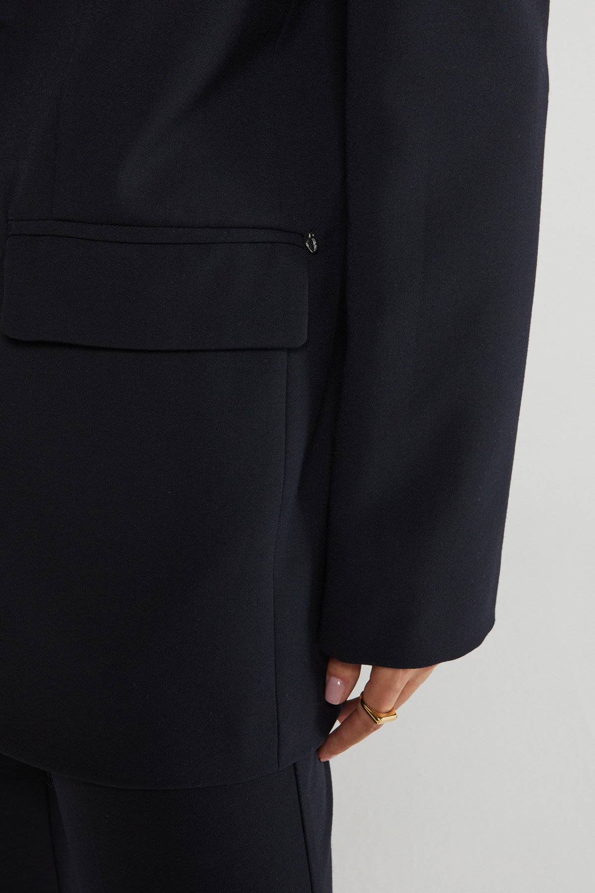 One button jacket with matching lapels and inner lining