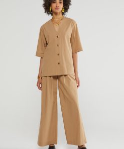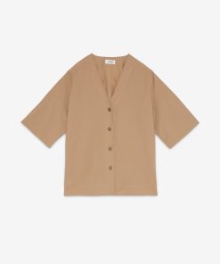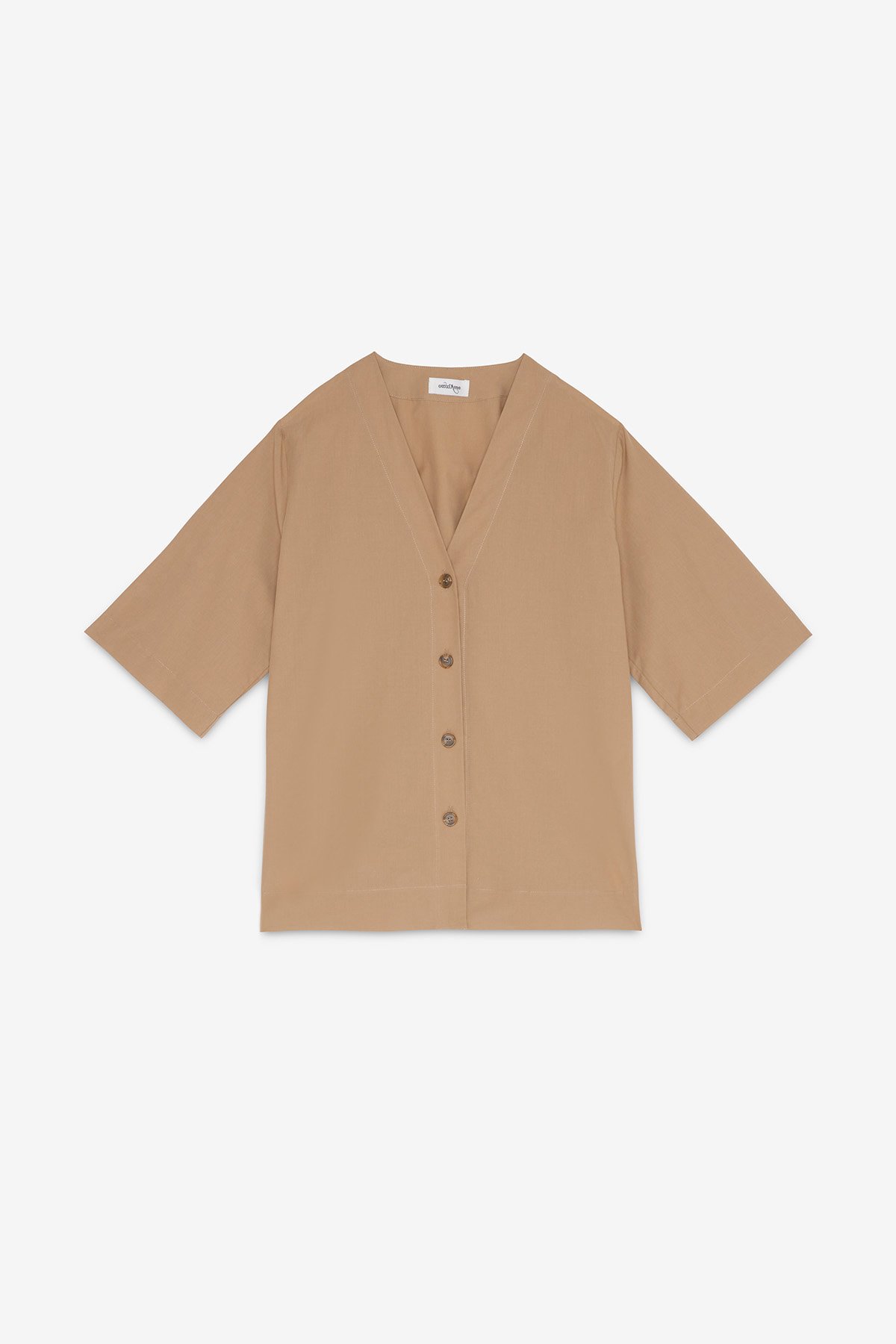 100% poplin cotton short-sleeved shirt with slits at the hem