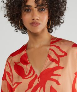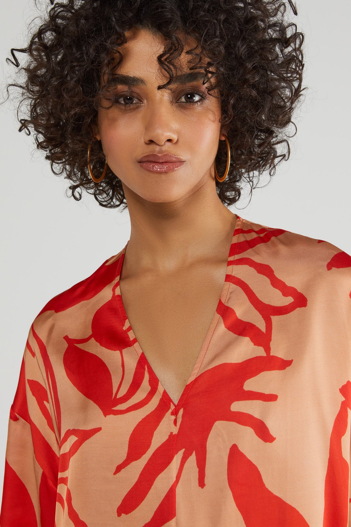 100% printed viscose V-neck sweater with 3/4 sleeves
