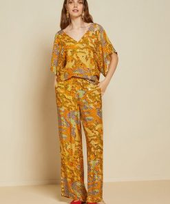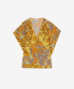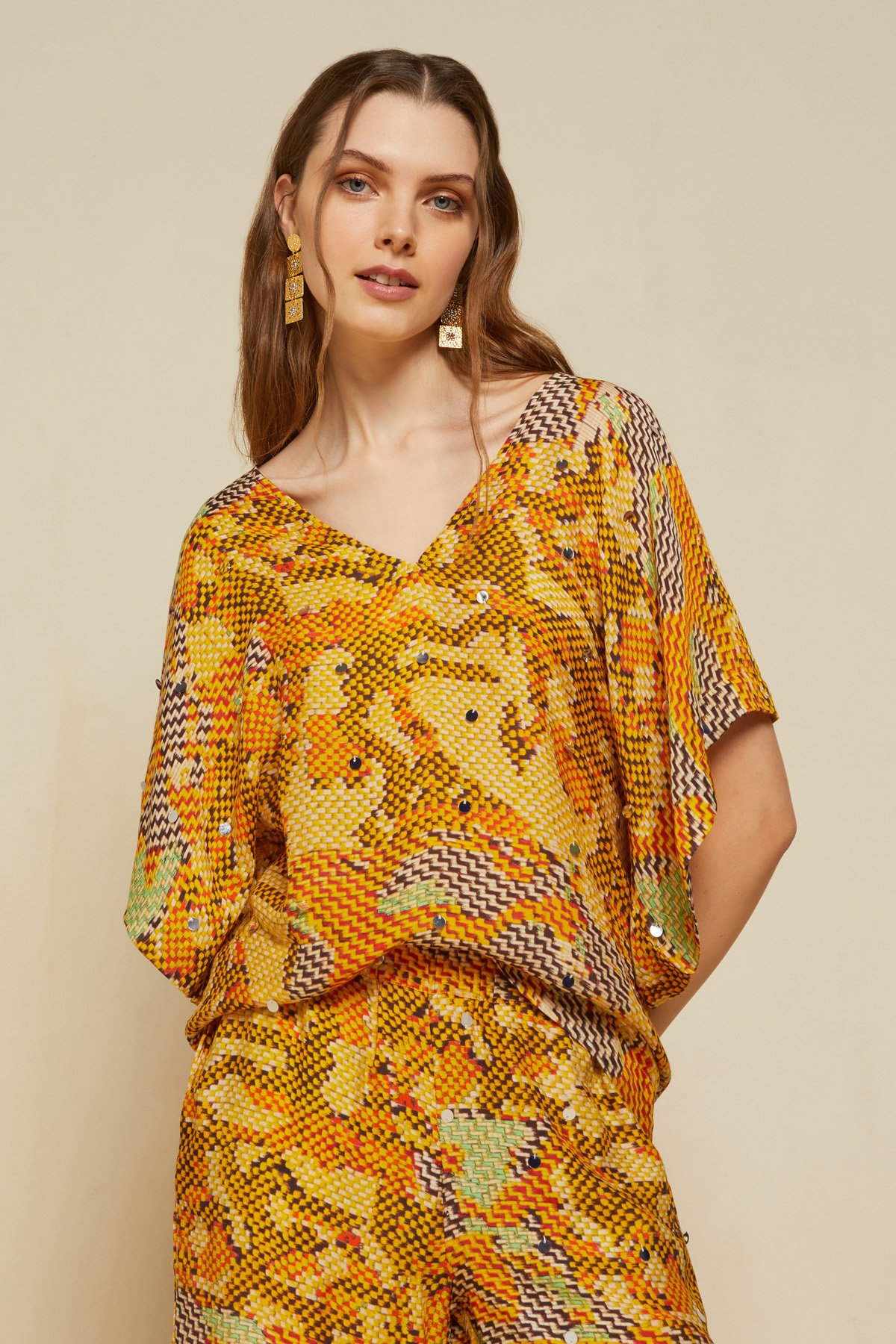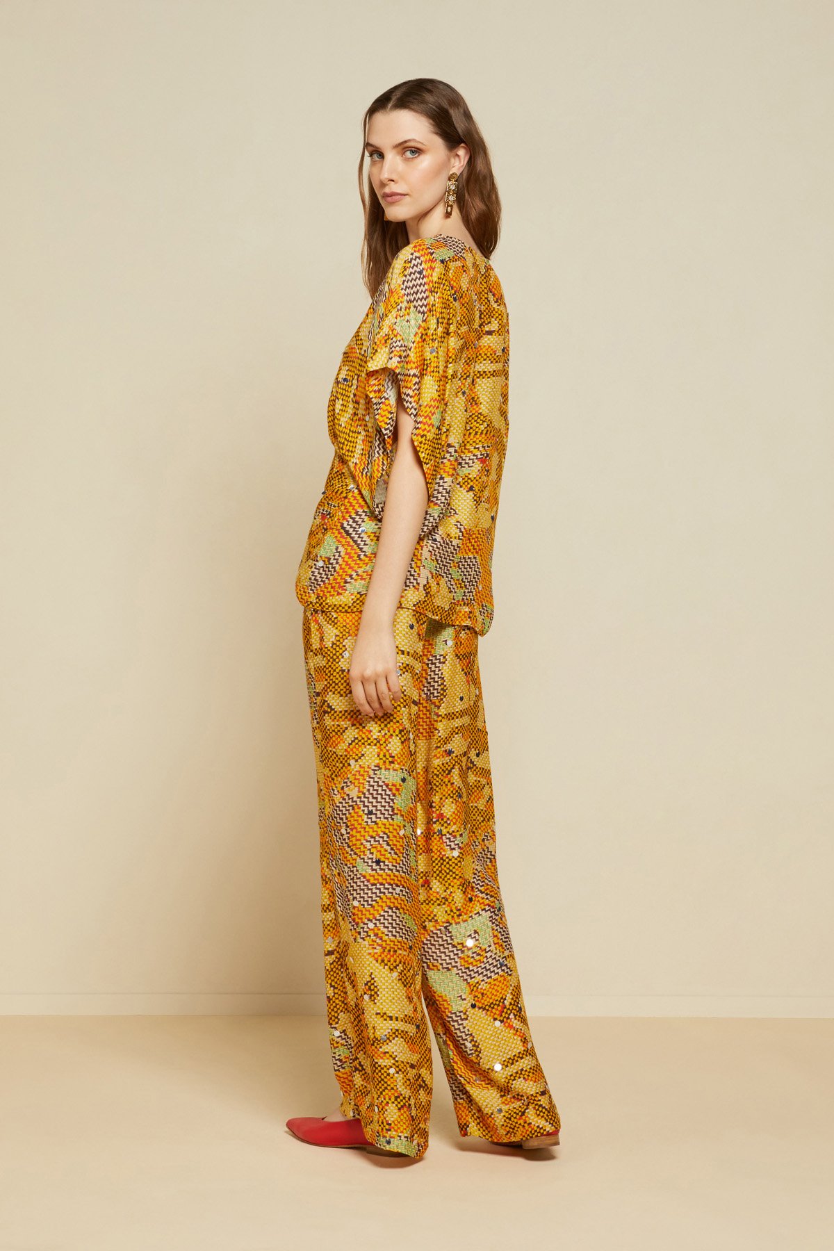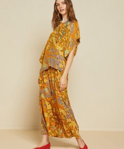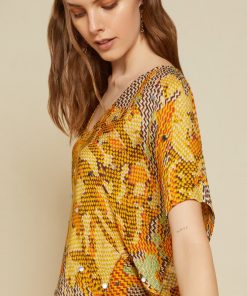 Fluid 100% printed viscose shirt with wide sleeves